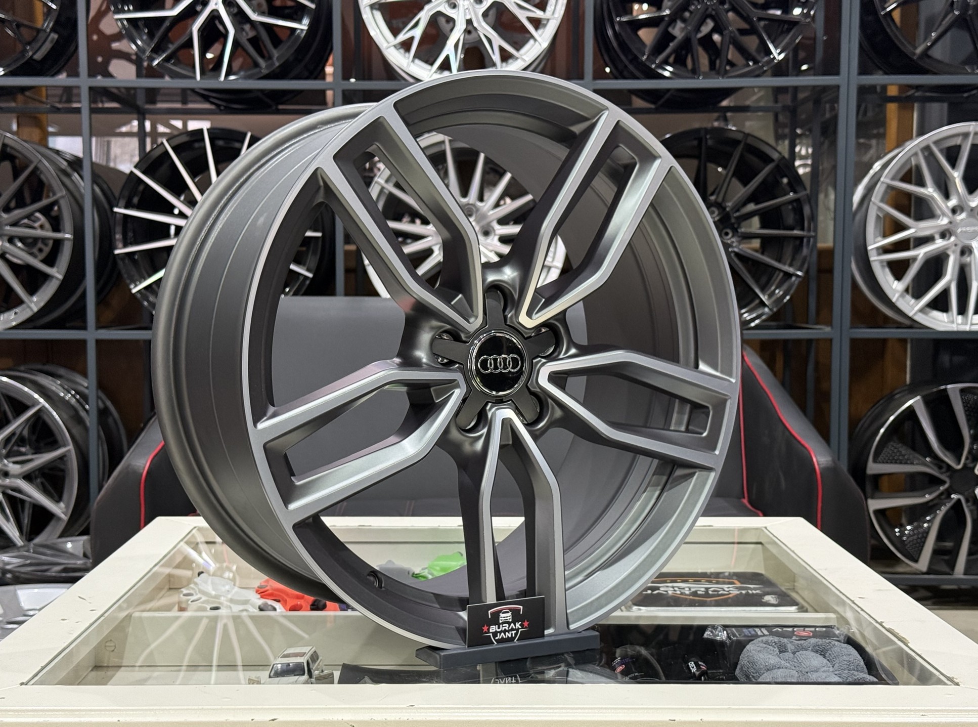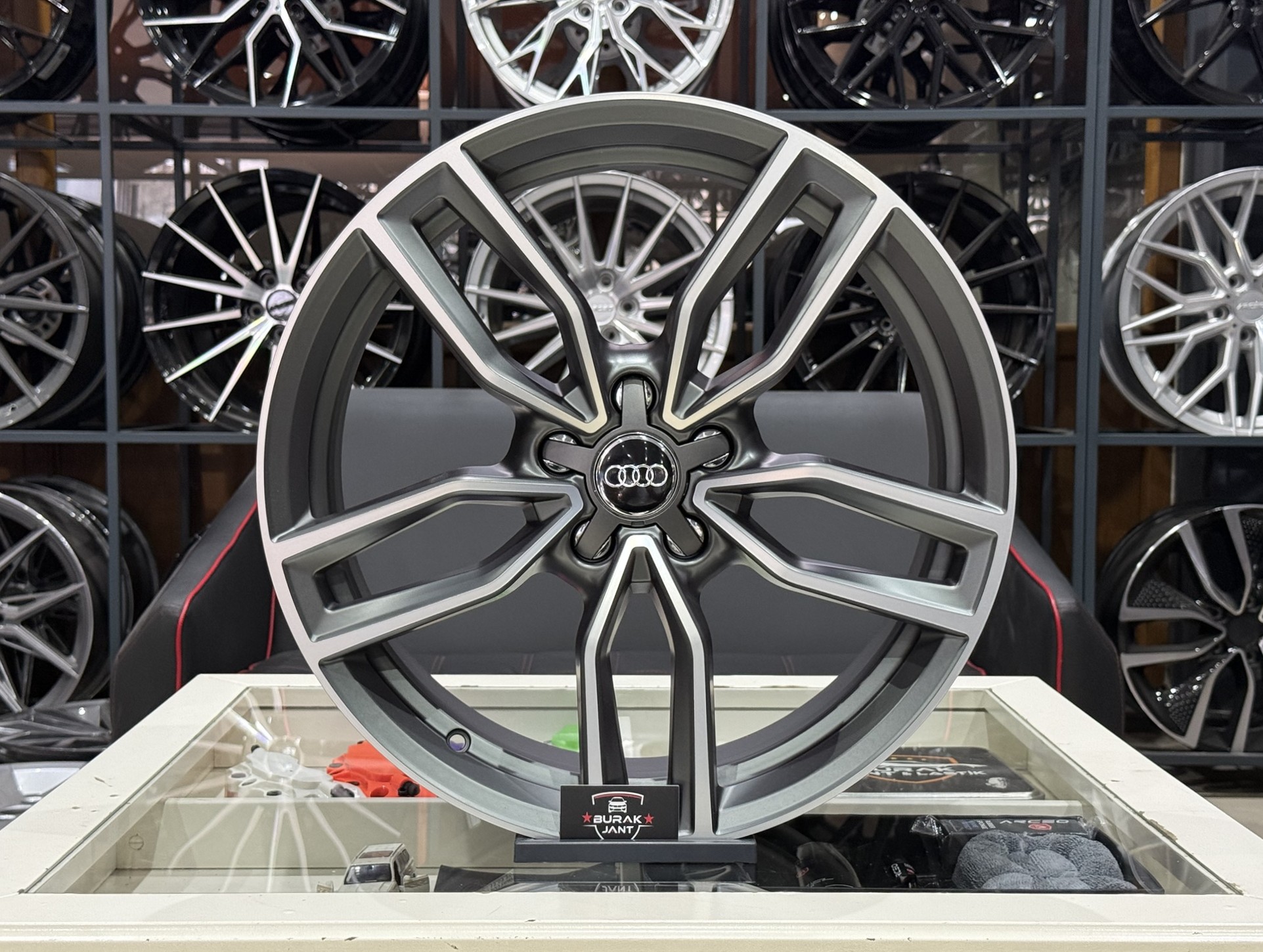 Mat Gunmetal rengi, elmas kesim parlak detaylarla birleşerek hem sade hem çarpıcı bir tasarım ortaya koyar. Audi’nizin zarif ve güçlü çizgileriyle mükemmel uyum sağlayan bu jantlar, dış etkenlere karşı dayanıklı kaplaması sayesinde uzun ömürlü kullanım sunar.